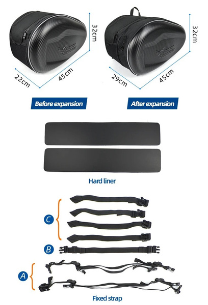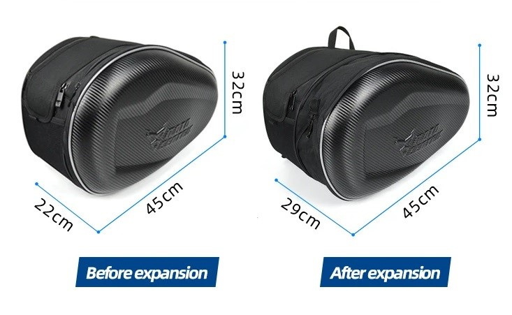 Praktiska väskor för motorcyklar med justerbar kapacitet.