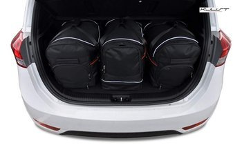 I vårt sortiment hittar du bilväskor passar bilar som Skoda Fabia, Kia Cee'd, Opel Astra, Audi A6, Ford Puma, Toyota Land Cruiser samt Bentley Bentayga och Maserati Levante. Våra baguppsättningar är avsedda för en specifik karosstyp och bilversion, så det finns inget utrymme för misstag! Sortimentet omfattar både resväskor, som kännetecknas av sin hållbarhet tack vare en insydd ram med utdragbart handtag och tysta gummihjul, och sportväskor, som kännetecknas av avsaknad av ram och hjul, större flexibilitet och bärbarhet. De kan också vikas till en liten storlek.